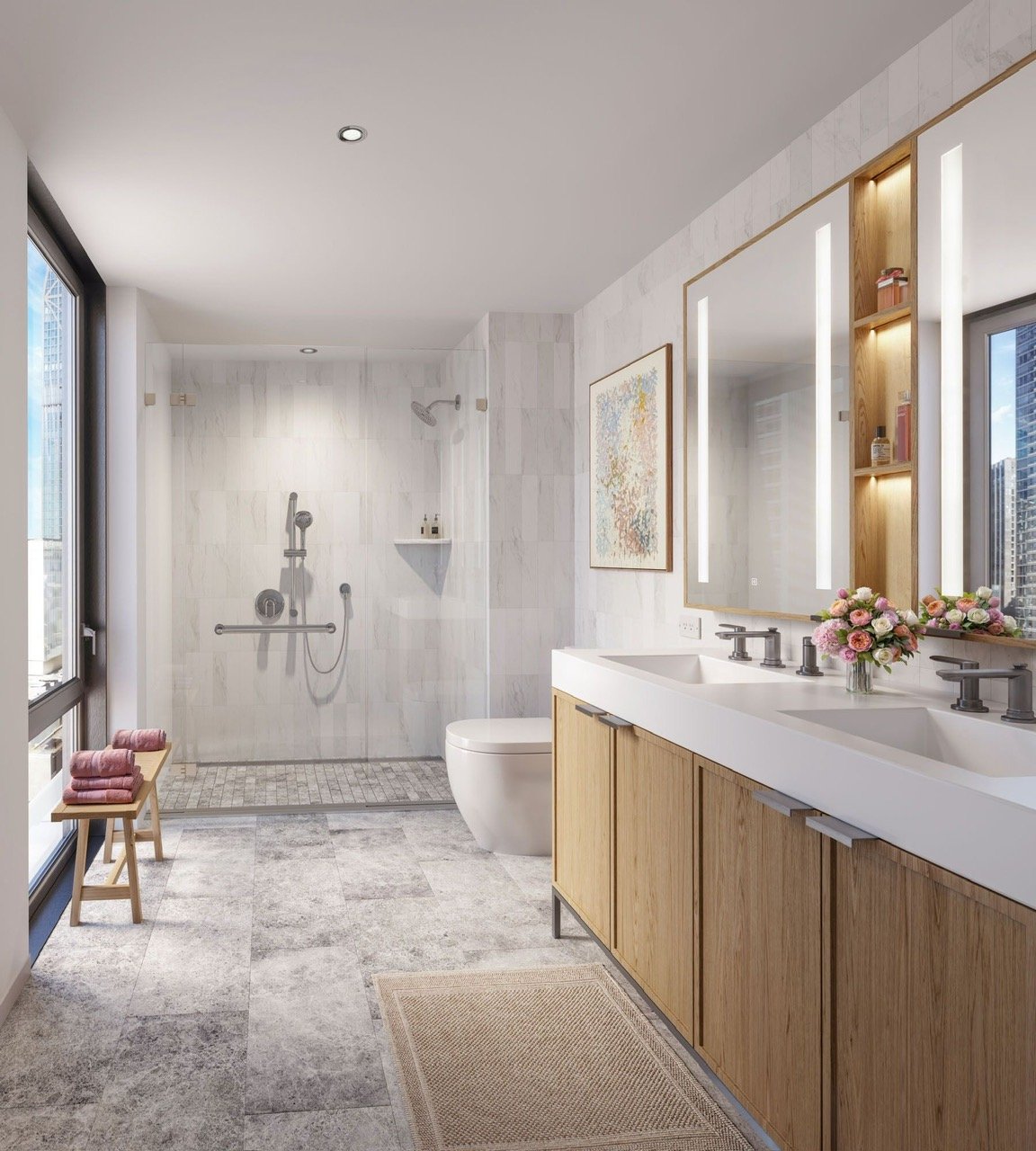 18W55 is a boutique collection of exquisitely crafted rental residences along Manhattan’s iconic Fifth Avenue. This ground-up luxury development designed by Morris Adjmi Architects offers studio, one, two and three-bedroom homes as well as full-floor penthouses, blending timeless materials with modern aesthetic in a setting that reflects the elegance of its surroundings. Gracious interiors feature oversized windows, nine-foot ceilings, engineered white oak flooring, and spa-inspired baths finished with Italian marble and custom oak vanities.