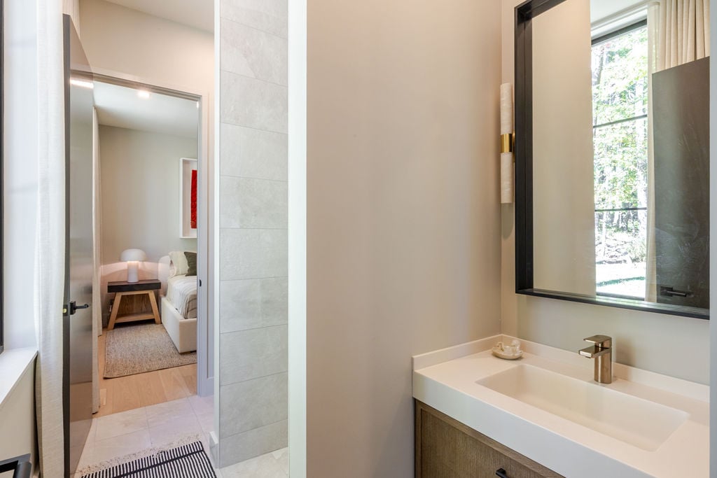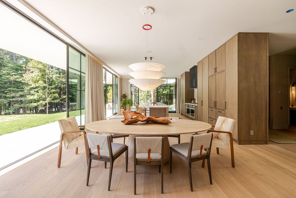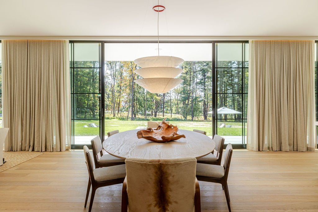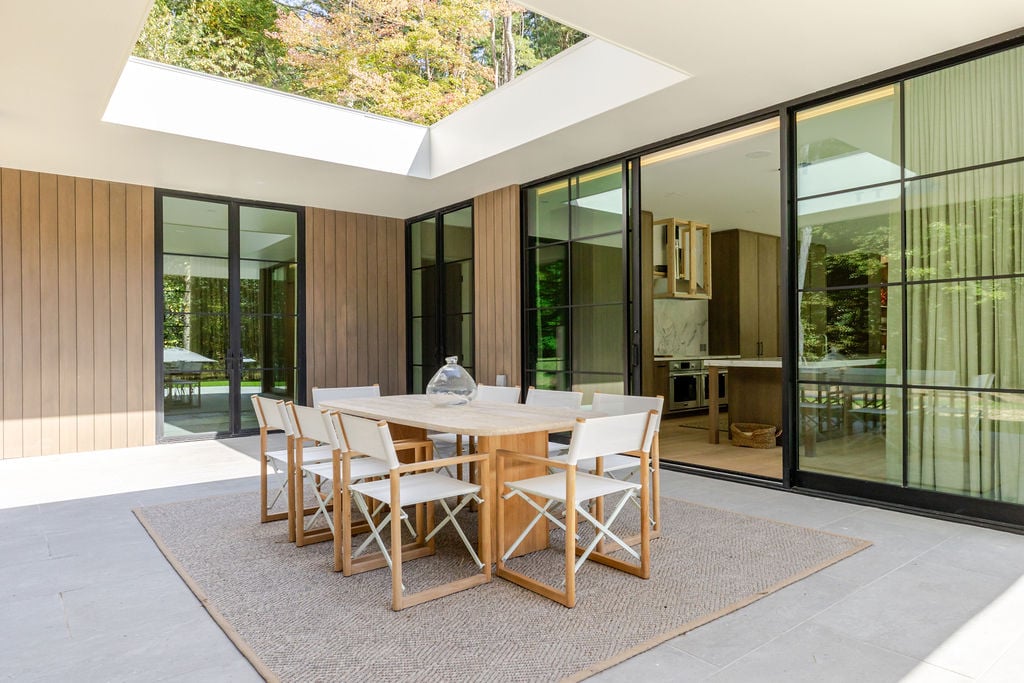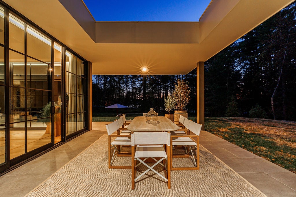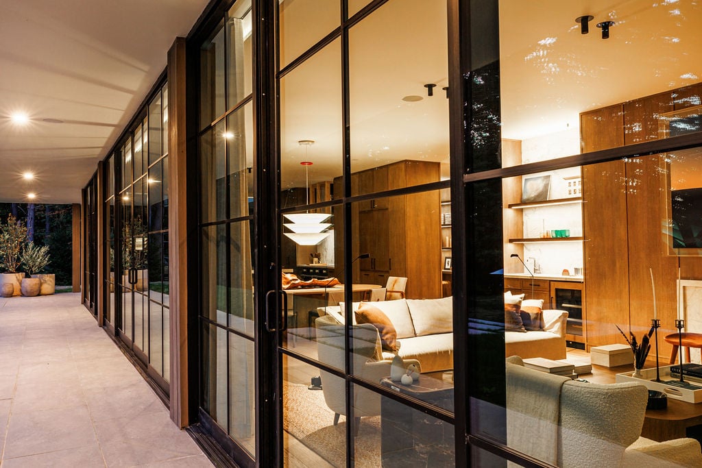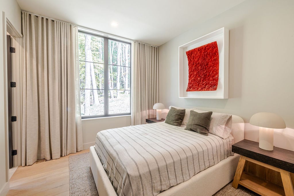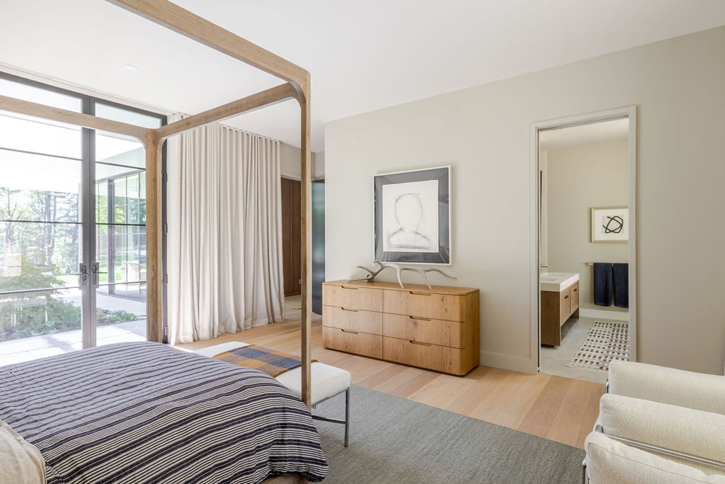 Located in the private, gated enclave of The Ridge at Copake Lake. This newly built modern glass home offers single-level living on 4 secluded acres. Designed for an indoor/outdoor lifestyle, the main level features 4 bedrooms, 3.5 bathrooms, and a great room with a custom millwork kitchen, large breakfast bar, and floor-to-ceiling glass for seamless connection to the outdoors. The lower level is finished for use as a media room, guest room, game room or additional entertaining space. There is also a 4th full bathroom and an incredible amount of additional storage. A gunite pool and detached 2-car garage complete the offering. Sold fully furnished, including a fully equipped kitchen and high-quality linens. It is truly move-in ready. Enjoy access to a private 99-ft waterfront with an individually appointed boat slip.