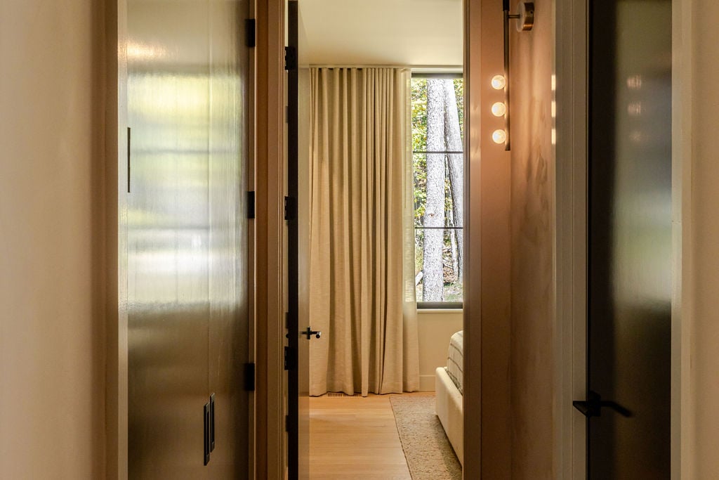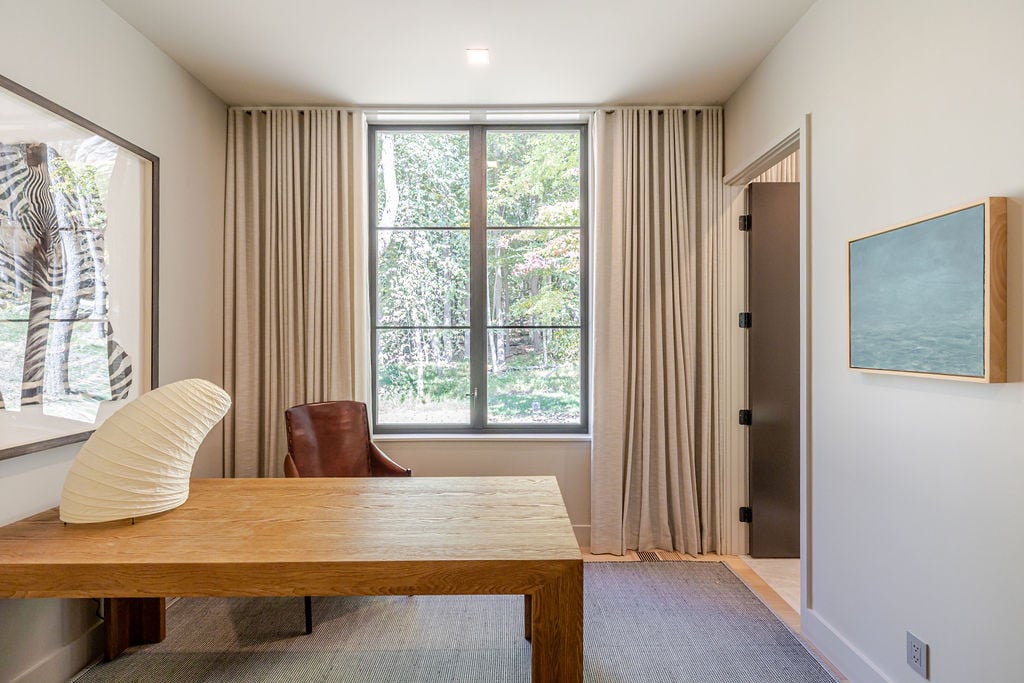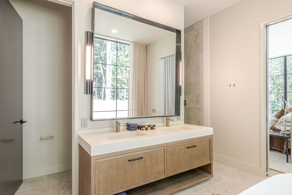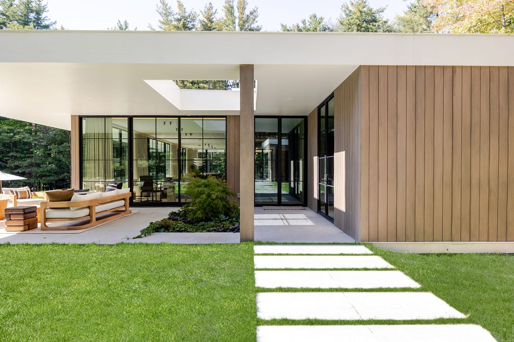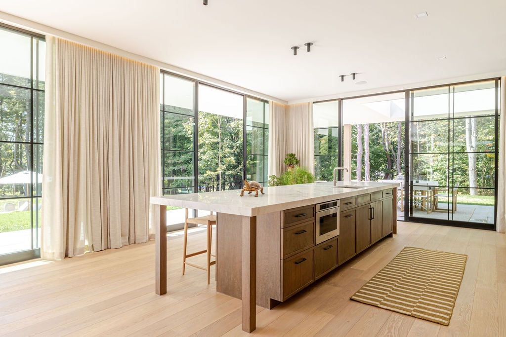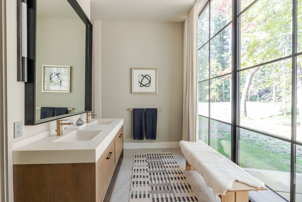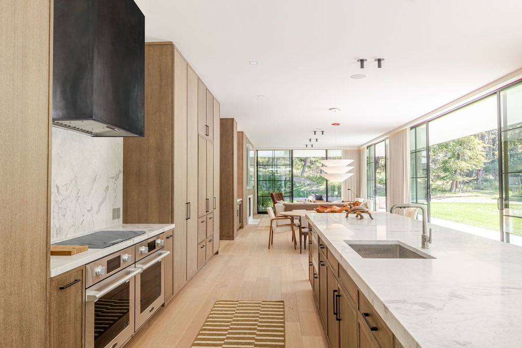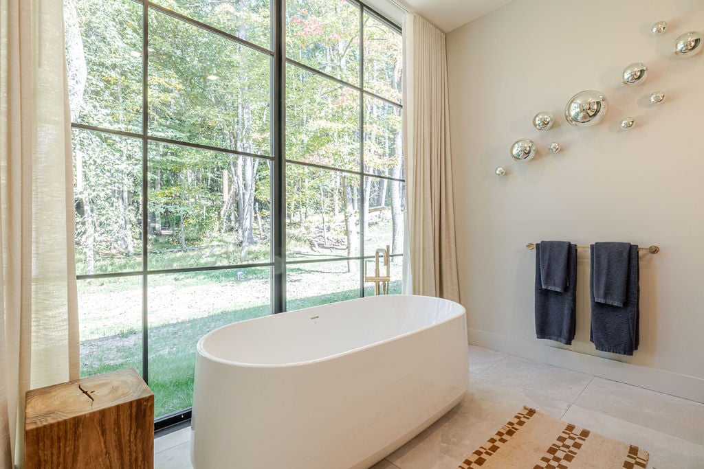Located in the private, gated enclave of The Ridge at Copake Lake. This newly built modern glass home offers single-level living on 4 secluded acres. Designed for an indoor/outdoor lifestyle, the main level features 4 bedrooms, 3.5 bathrooms, and a great room with a custom millwork kitchen, large breakfast bar, and floor-to-ceiling glass for seamless connection to the outdoors. The lower level is finished for use as a media room, guest room, game room or additional entertaining space. There is also a 4th full bathroom and an incredible amount of additional storage. A gunite pool and detached 2-car garage complete the offering. Sold fully furnished, including a fully equipped kitchen and high-quality linens. It is truly move-in ready. Enjoy access to a private 99-ft waterfront with an individually appointed boat slip.